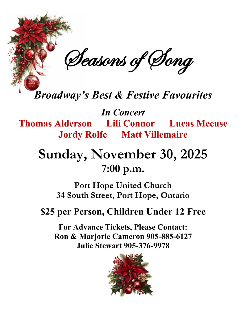 Concert at Port Hope United Church. Five musical theatre singers who have been on stages across […]