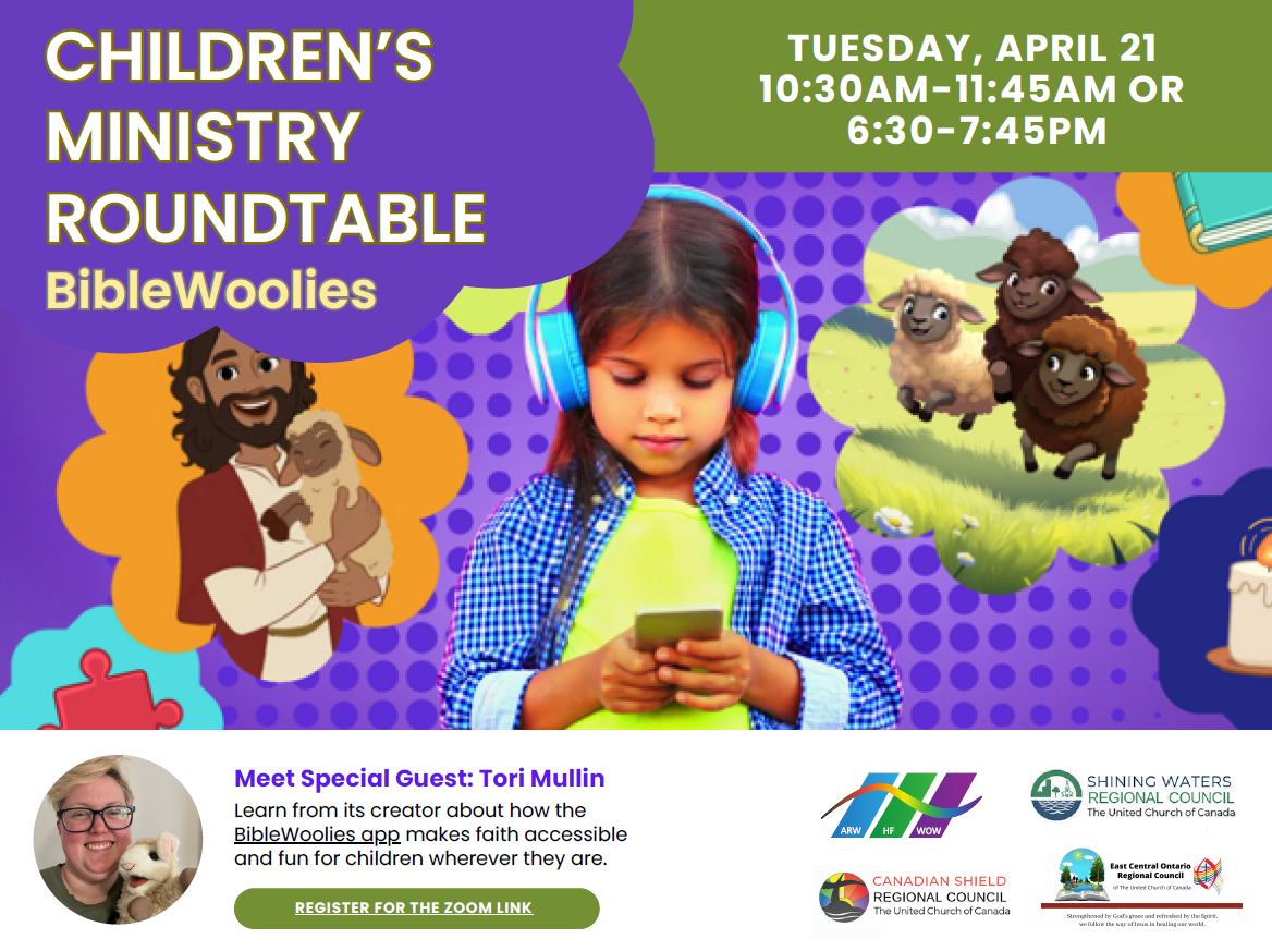 Join our guest, Tori Mullin, to learn about BibleWoolies – an app especially for children! Woolies is a project of Jesus, Glue and Glitter developed by Tori as a way for parents, caregivers and faith communities to support the spiritual and faith formation of children beyond Sunday programming. Visit Children’s Ministry Roundtable to register!